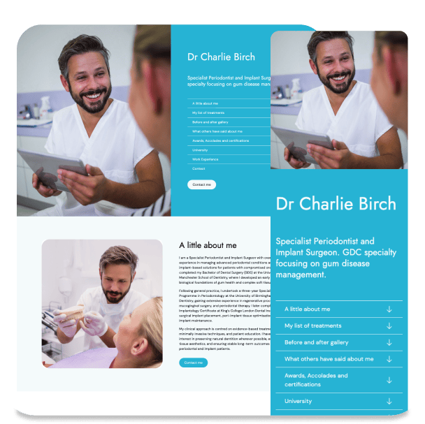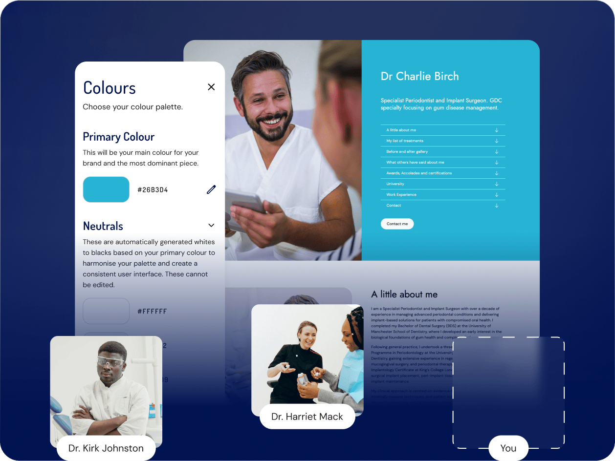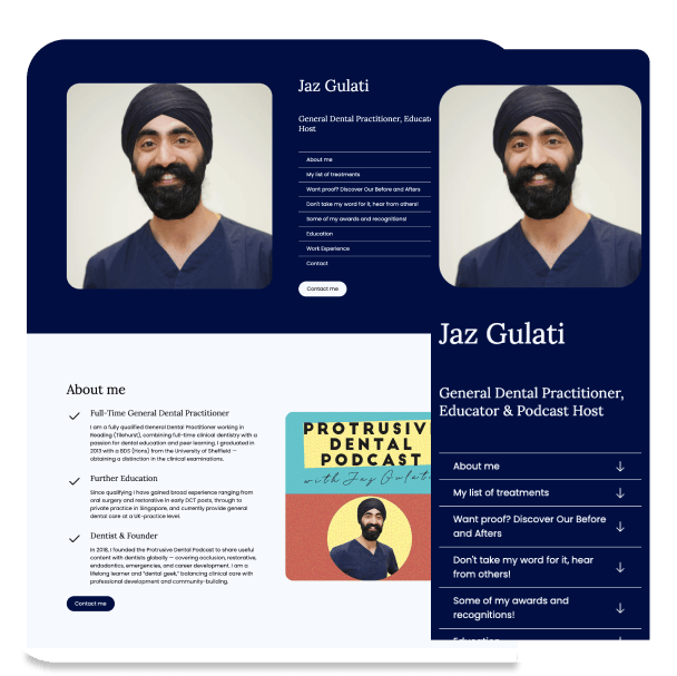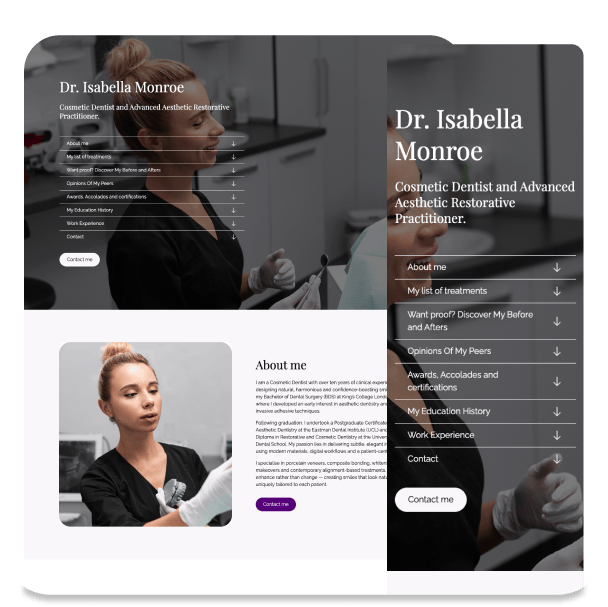 Dentistry is a competitive market and these days portfolios are dull, boring and either have too little or too much content. With our portfolio builder, easily choose a design that resonates with you, clearly states your skills and get people interested.