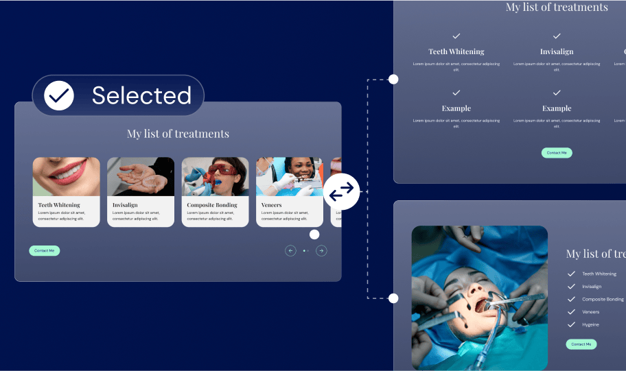 Find the perfect way to show off your before and afters, the ultimate gateway for people to see your results. Try different components to see how yours fit.